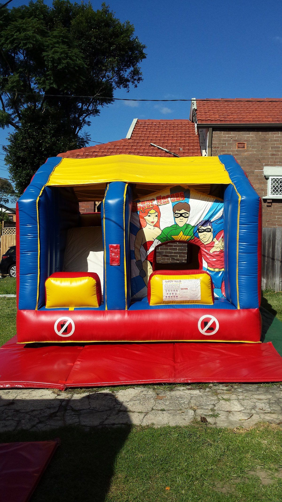 All castle hires come with FREE certified crash mats as well as all required safety equipment such as preventative trip hazard devices, road safety cones, child proof extension leads covers as well as circuit breaker safety devices fitted to all power leads provided. Sydney Jumping Castle Hire - where quality counts.